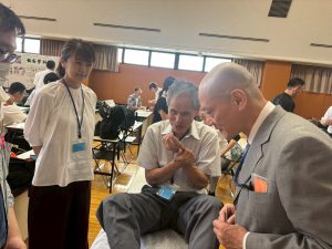 指導を担当した普通部1年生の班では、補法と瀉法の基本刺鍼と本治法トレーニングを行いました。