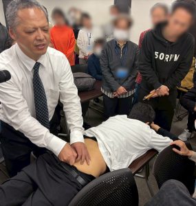 また、最後に中野会長から坐骨神経痛に対するアプローチをご披露いただき、全員が手技に注目しながら理解を深める貴重な時間となりました。